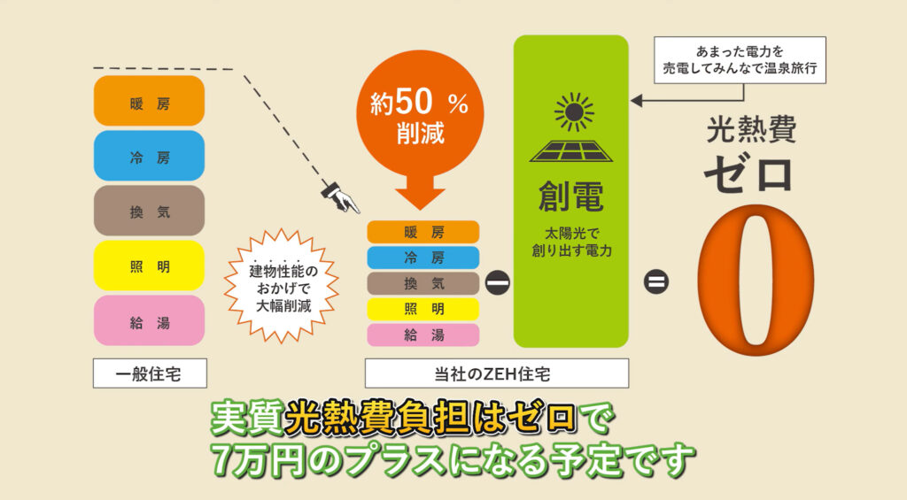 太陽光発電によるエネルギーの自給と売電により、光熱費負担は実質ゼロを超え、プラスになることが見込めます。
